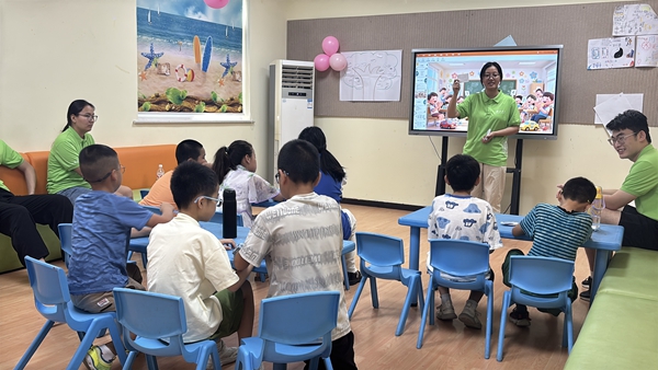 圖為實(shí)踐隊(duì)員向?qū)W生講解第一次活動(dòng)