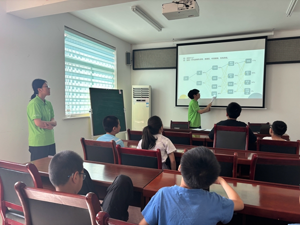 圖為實(shí)踐隊(duì)員講解AI技術(shù)原理