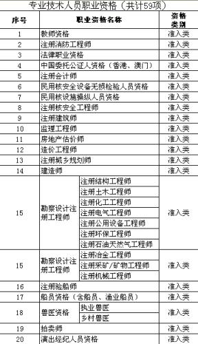 在140項(xiàng)職業(yè)資格中,專業(yè)技術(shù)人員職業(yè)資格59項(xiàng),含準(zhǔn)入類36項(xiàng),水平評(píng)價(jià)類23項(xiàng);技能人員職業(yè)資格81項(xiàng),含準(zhǔn)入類5項(xiàng),水平評(píng)價(jià)類76項(xiàng)。
