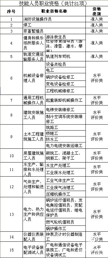 附:國家職業(yè)資格目錄中的81項(xiàng)技能人員職業(yè)資格。