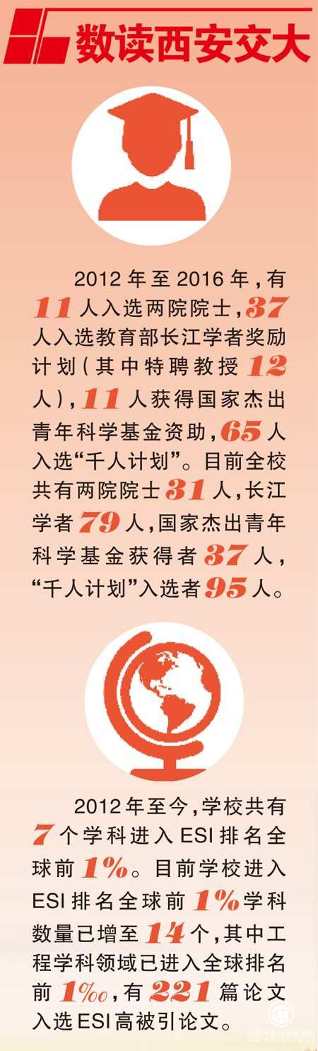 習(xí)近平總書(shū)記提出,要充分發(fā)揮高校人才薈萃、學(xué)科齊全、思想活躍、基礎(chǔ)雄厚的優(yōu)勢(shì),面向經(jīng)濟(jì)建設(shè)主戰(zhàn)場(chǎng),面向民生建設(shè)大領(lǐng)域,加強(qiáng)科學(xué)研究工作,加大科技創(chuàng)新力度,努力形成更多更先進(jìn)的創(chuàng)新成果。西安交大堅(jiān)持“三個(gè)面向”不斷邁出科技協(xié)同創(chuàng)新的堅(jiān)實(shí)步伐:2017年新增2個(gè)學(xué)科進(jìn)入ESI全球前1%,5年來(lái)新增7個(gè)學(xué)科進(jìn)入ESI前1%,總數(shù)已達(dá)14個(gè);2016年具有自主知識(shí)產(chǎn)權(quán)的煤炭高效利用和清潔無(wú)污染的變革性技術(shù)“水蒸煤”投入產(chǎn)業(yè)化運(yùn)行;2016年落實(shí)“軍民融合”國(guó)家發(fā)展戰(zhàn)略的Z箍縮重大科技基礎(chǔ)設(shè)施,被教育部列入首批國(guó)家重大科技基礎(chǔ)設(shè)施培育項(xiàng)目等等,讓西安交大成為催化產(chǎn)業(yè)轉(zhuǎn)型升級(jí)的生力軍,全面提高大學(xué)服務(wù)經(jīng)濟(jì)社會(huì)發(fā)展的貢獻(xiàn)度。