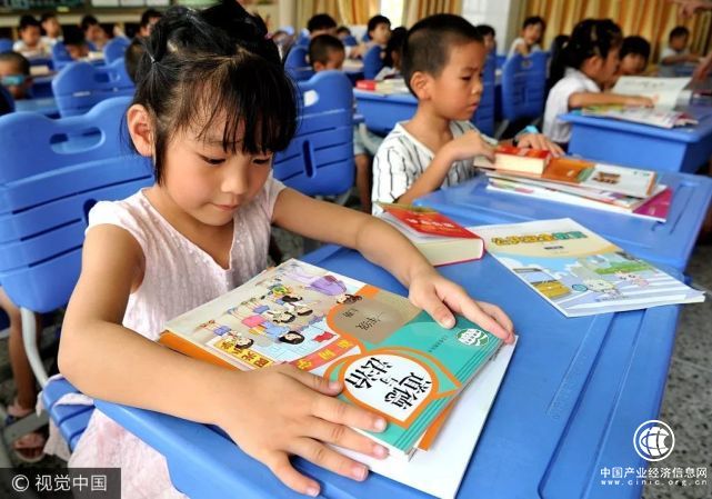 2017年8月31日,福州市倉山區(qū)第五中心小學一年級新生在閱讀《道德與法治》課本。張斌(福建分社)/中新社/視覺中國