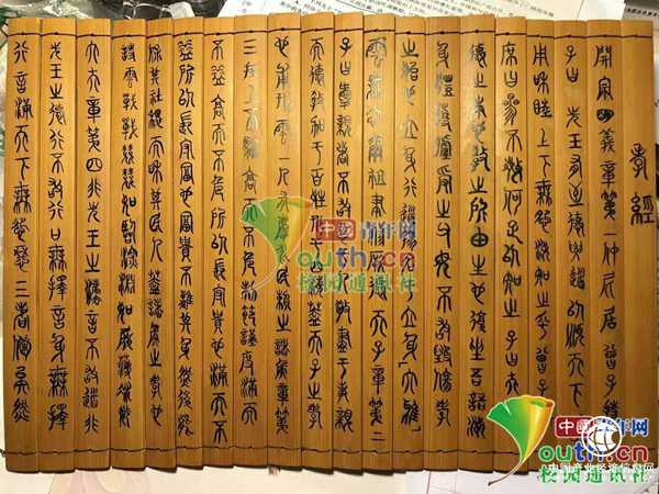 中國青年網(wǎng)北京11月10日電(記者李華錫通訊員汪博)近日,江西師范大學(xué)漢語言文學(xué)專業(yè)的期中作業(yè)走紅網(wǎng)絡(luò),布置作業(yè)的教師要求作業(yè)用小篆在竹簡上謄抄《孝經(jīng)》。提前抄完的同學(xué)表示:“過程很艱難,2369字一個字都不能錯,但收獲也很豐富!”此事一經(jīng)自媒體傳播,立即引起網(wǎng)友熱議,網(wǎng)友紛紛為此點贊打call,并表示想去上這位老師的課!