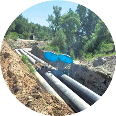 匯能控股集團(tuán)蒙南電廠鋪設(shè)供熱管道施工現(xiàn)場(chǎng)。
