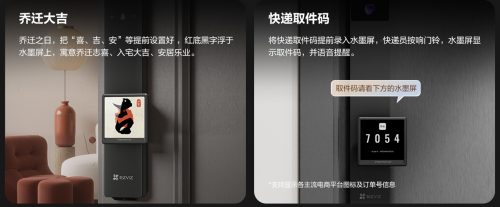 而在細(xì)節(jié)體驗上,螢石更將情緒關(guān)照落到實處。針對網(wǎng)購時代的高頻退貨需求,用戶可在 APP 預(yù)設(shè)取件碼,當(dāng)快遞員上門按響門鈴時,水墨屏將自動顯示取件碼,讓原本繁瑣的退貨流程,變得便捷又充滿儀式感。