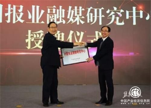 中國報業(yè)協(xié)會秘書長胡懷福為“中國報業(yè)融媒體研究中心”授牌