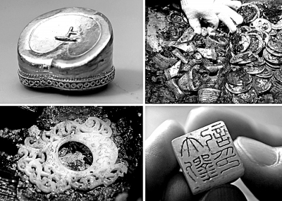?;韬钅钩鐾恋慕痫?、馬蹄金、麟趾金和金板、龍虎形玉佩及刻有“大劉記印”字樣的龜形玉印。 新華社發(fā)