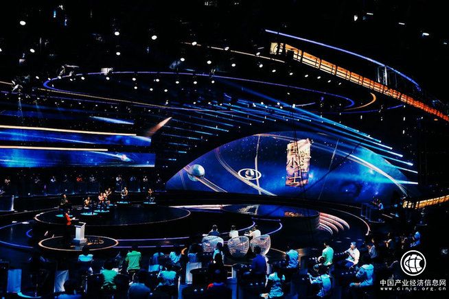 舞臺(tái)變化與節(jié)目“斗轉(zhuǎn)星移、摘星斬月、秘境行蹤”等獨(dú)創(chuàng)環(huán)節(jié)緊密結(jié)合,諸如在 “斗轉(zhuǎn)星移”環(huán)節(jié),舞臺(tái)的主logo背景、環(huán)屏背景、百人席的桌屏都會(huì)以星空為主題。這種設(shè)計(jì)打破了傳統(tǒng)舞臺(tái)的設(shè)計(jì)造型感,充分利用和拓展了舞臺(tái)空間。