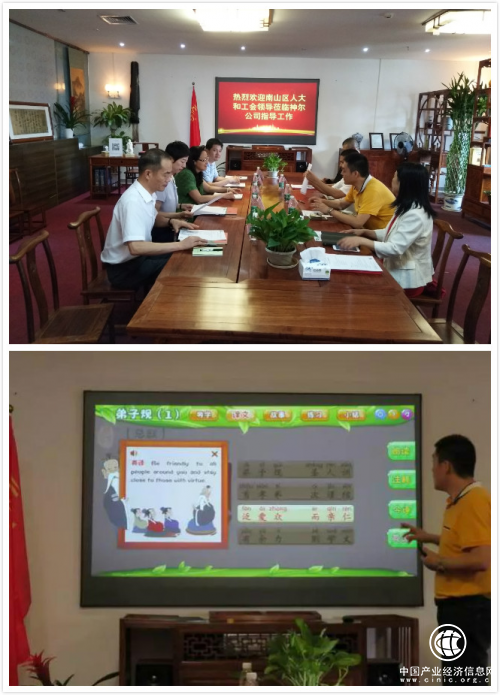 路玉萍一行首先參觀了該公司的國(guó)學(xué)教室、錄音室、動(dòng)畫制作室、編輯創(chuàng)作工作區(qū)域,隨后聽(tīng)取了該公司負(fù)責(zé)人關(guān)于神爾澤慧文化傳播之“中華優(yōu)秀傳統(tǒng)文化進(jìn)校園系統(tǒng)解決方案”的介紹: