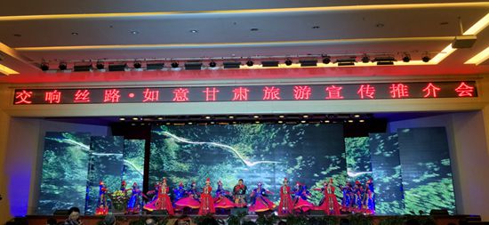 伴隨著推介會(huì)上傳來的優(yōu)美歌聲與獨(dú)具特色的民族舞蹈表演,甘肅旅游形象大使鄭琬講解了“交響絲路·如意甘肅”的寓意內(nèi)涵。“交響絲路”揭示了甘肅境內(nèi)長達(dá)1600多公里的絲綢之路文明的交匯與包容互鑒,又寓意著甘肅將在新時(shí)代“一帶一路”建設(shè)中奏響華麗的和弦;“如意甘肅”是指甘肅猶如一柄精致的“玉如意”鑲嵌在祖國大西北,展示著多姿多彩的歷史文化、地理地貌與民族風(fēng)情。