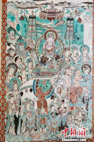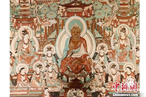 圖為宋明尚臨摹的榆林窟第25窟觀無量壽經變畫。高康迪攝