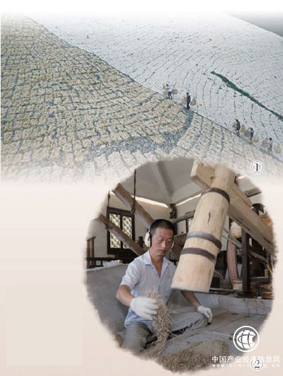 圖①:攤曬宣紙?jiān)?。(資料圖片)