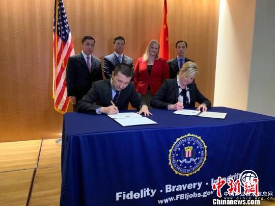 中國國家文物局與美國聯(lián)邦調(diào)查局代表簽署并互換文物返還證書 國家文物局供圖