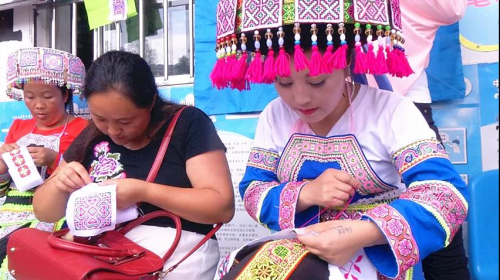 據(jù)悉,苗族刺繡具有傳承歷史文化的作用,主要表現(xiàn)在刺繡的圖案上,幾乎每一個(gè)刺繡圖案紋樣都有來歷或傳說,都深含民族文化,是民族情感的表達(dá),是苗族歷史與生活的展示。