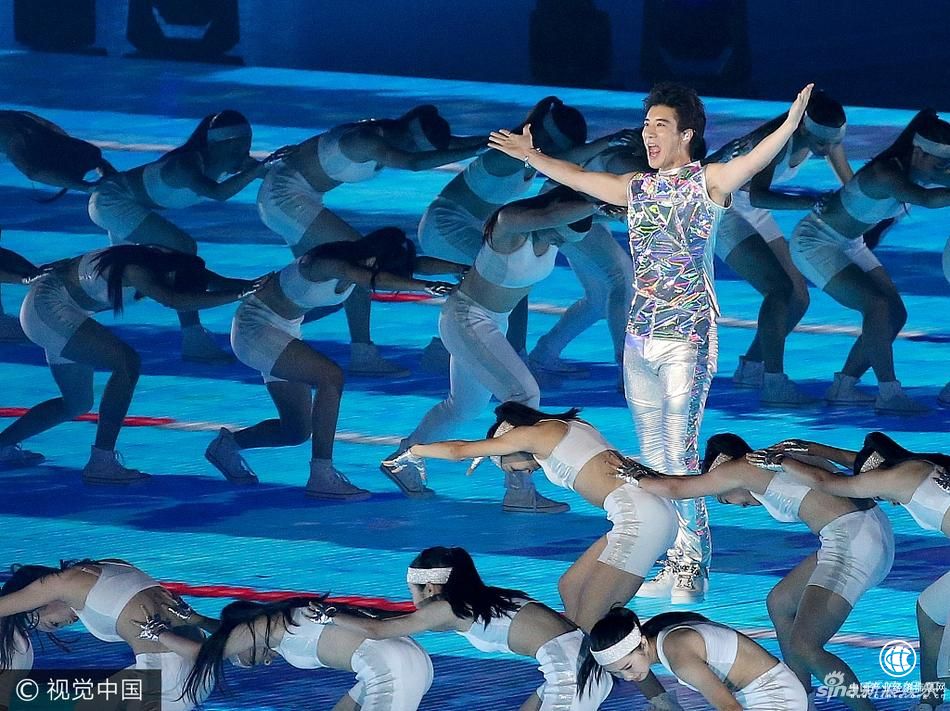 8月19日,臺北,2017臺北世界大學(xué)生運(yùn)動會在臺北田徑場舉行開幕典禮。王力宏無袖裝現(xiàn)身,blingbling閃耀全場。