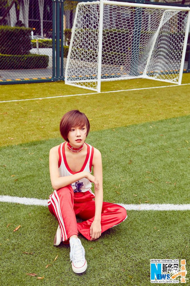 近日,一組王珞丹球場大片曝光。照片中,她白背心搭配紅色系運動褲,在足球場上帥氣亮相。時而與球門互動,颯爽干練;時而在草坪小憩,目眺遠方。王珞丹近來的照片大都是白背心搭配簡單舒適的下裝,再加上一直以來的短發(fā)造型,利索干練,英氣逼人。