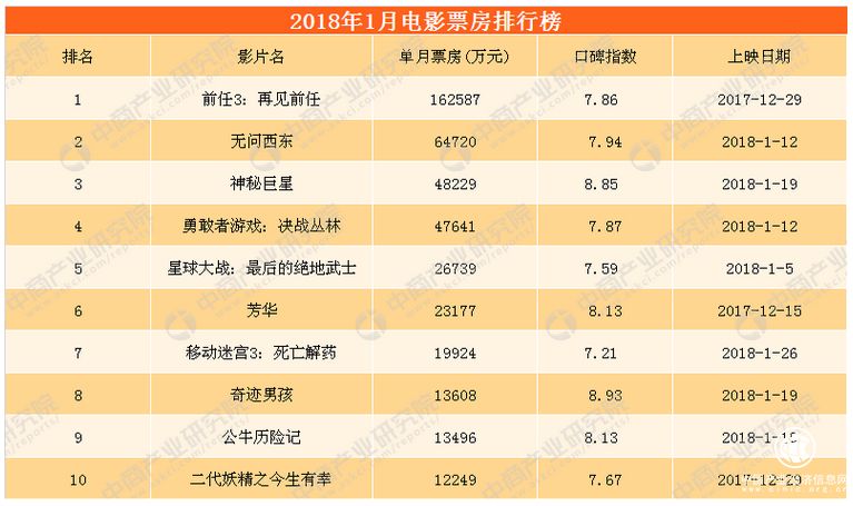 在一月份的電影市場,國產(chǎn)大片表現(xiàn)不俗,《前任3》和《無問西東》高居排行榜前兩位。此外,還有3部國產(chǎn)片票房過億。