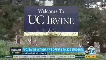 據(jù)美國僑報網(wǎng)綜合報道,秋季學期馬上要開學了,很多新生都在網(wǎng)上做著新生攻略,準備入學資料,而美國加州大學歐文分校(UC Irvine)卻突然傳來要撤回503份錄取通知,這無疑是晴天霹靂。其中受影響的中國學生可能超過百人。