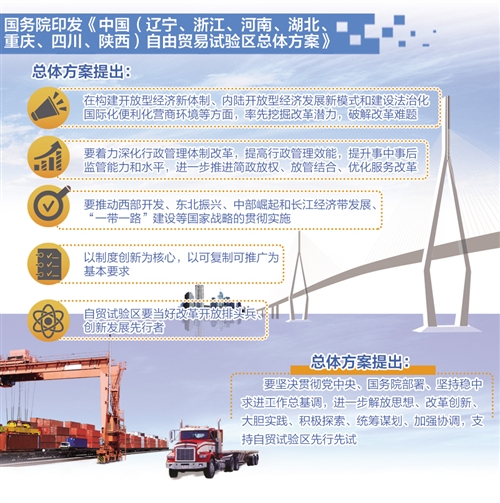 此外,新自貿(mào)試驗(yàn)區(qū)在整體方案設(shè)計(jì)上也考慮到了差異化問(wèn)題,在試點(diǎn)內(nèi)容上進(jìn)行立體化探索。遼寧重點(diǎn)深化國(guó)資國(guó)企改革;浙江一項(xiàng)重要的內(nèi)容就是要通過(guò)建設(shè)國(guó)際海事服務(wù)基地、國(guó)際油品的儲(chǔ)運(yùn)基地來(lái)推動(dòng)對(duì)外貿(mào)易發(fā)展;河南要打造國(guó)際交通物流通道,來(lái)降低運(yùn)輸費(fèi)用;湖北重點(diǎn)推動(dòng)創(chuàng)新驅(qū)動(dòng)發(fā)展和促進(jìn)中部地區(qū)與長(zhǎng)江經(jīng)濟(jì)帶戰(zhàn)略對(duì)接以及相關(guān)產(chǎn)業(yè)升級(jí);重慶將重點(diǎn)推進(jìn)“一帶一路”和長(zhǎng)江經(jīng)濟(jì)帶聯(lián)動(dòng)發(fā)展;四川要推動(dòng)內(nèi)陸與沿海沿邊沿江協(xié)同開(kāi)發(fā)戰(zhàn)略,結(jié)合創(chuàng)新要素;陜西將創(chuàng)新現(xiàn)代農(nóng)業(yè)交流合作機(jī)制,擴(kuò)大與“一帶一路”沿線國(guó)家的合作。王受文表示:“這些不同的自貿(mào)試驗(yàn)區(qū)試點(diǎn)各具特色,為的是在全國(guó)能夠形成可復(fù)制、可推廣的經(jīng)驗(yàn),在全國(guó)來(lái)推廣。”