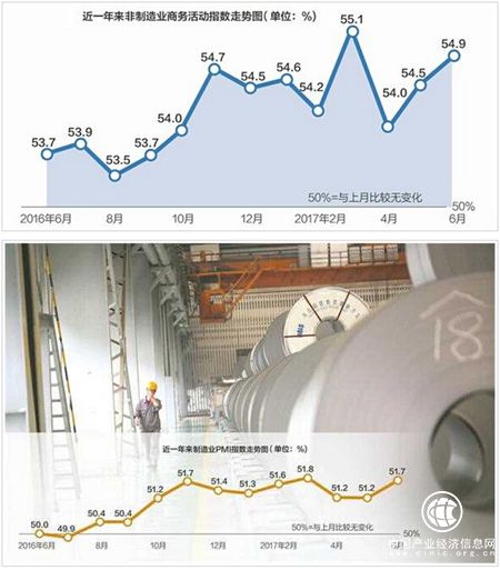 國(guó)家統(tǒng)計(jì)局?jǐn)?shù)據(jù)還顯示,2017年上半年非制造業(yè)商務(wù)活動(dòng)指數(shù)均值為54.6%,高于去年同期1.2個(gè)百分點(diǎn),6月非制造業(yè)商務(wù)活動(dòng)指數(shù)為54.9%,高于上月0.4個(gè)百分點(diǎn),連續(xù)兩個(gè)月上升,非制造業(yè)繼續(xù)保持穩(wěn)中有升的擴(kuò)張態(tài)勢(shì)。