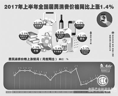 ——物價形勢總體穩(wěn)定。上半年全國居民消費價格同比上漲了1.4%,與一季度基本持平;扣除食品和能源價格的核心CPI基本穩(wěn)定,上半年核心CPI同比上漲2.1%。