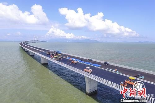 圖為工人們在港珠澳大橋上進行橋面鋪裝。 中新社記者 陳驥旻 攝