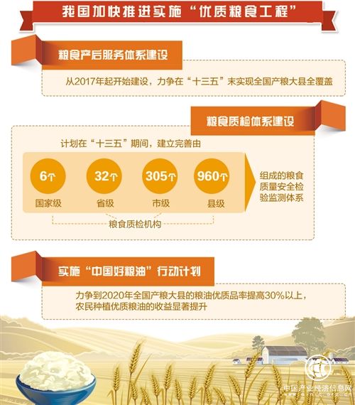 目前,我國糧食生產(chǎn)能力已達1.2萬億斤,但是結(jié)構(gòu)性矛盾十分突出,優(yōu)質(zhì)品種供給不足。國家糧食局和財政部今年啟動實施了“優(yōu)質(zhì)糧食工程”,推動糧食生產(chǎn)由“多產(chǎn)糧”向“產(chǎn)好糧”轉(zhuǎn)變,增加綠色優(yōu)質(zhì)糧油產(chǎn)品供給,助推糧食產(chǎn)業(yè)提質(zhì)增效。糧食產(chǎn)后服務(wù)體系建設(shè)、糧食質(zhì)檢體系建設(shè)、“中國好糧油”行動是實施“優(yōu)質(zhì)糧食工程”的三個主要內(nèi)容和重要抓手。