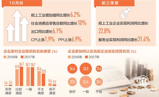 看企業(yè)反饋。春江水暖鴨先知,企業(yè)家是對(duì)市場(chǎng)冷暖最敏感的群體。11月13日,中國(guó)企業(yè)家調(diào)查系統(tǒng)公布的第二十五次全國(guó)性企業(yè)家年度跟蹤調(diào)查顯示,2017年認(rèn)為宏觀經(jīng)濟(jì)“正常”的企業(yè)家首次超過(guò)一半,為2008年以來(lái)的歷史最高點(diǎn);認(rèn)為目前盈利“正常”或“好于正常”的企業(yè)家占53.4%,為近5年來(lái)的最高值;停產(chǎn)、半停產(chǎn)企業(yè)的比重為17.8%,為近5年來(lái)最低。