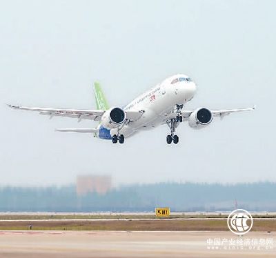 2017年5月5日,中國首款國際主流水準的干線客機C919在上海浦東國際機場起飛。新華社記者 丁汀 攝