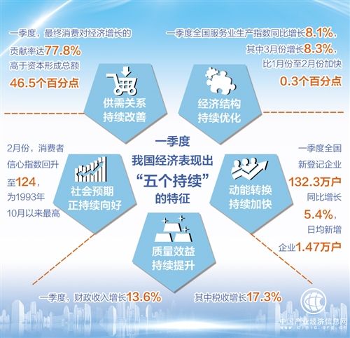 今年一季度我國(guó)經(jīng)濟(jì)運(yùn)行開局良好,呈現(xiàn)穩(wěn)中向好、好中有新的態(tài)勢(shì)。經(jīng)濟(jì)運(yùn)行表現(xiàn)出供需關(guān)系持續(xù)改善、經(jīng)濟(jì)結(jié)構(gòu)持續(xù)優(yōu)化、動(dòng)能轉(zhuǎn)換持續(xù)加快、質(zhì)量效益持續(xù)提升、社會(huì)預(yù)期正在持續(xù)向好等特征。在全面貫徹落實(shí)黨的十九大精神開局之年,一季度我國(guó)經(jīng)濟(jì)運(yùn)行為實(shí)現(xiàn)全年發(fā)展目標(biāo)任務(wù)打下了良好基礎(chǔ),也為新時(shí)代開啟新征程開好了頭、起好了步——