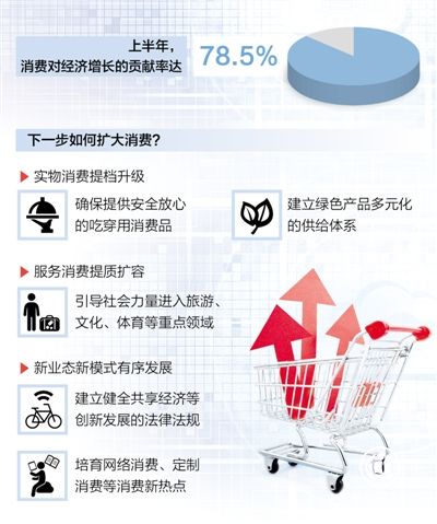 上半年,我國社會(huì)消費(fèi)品零售總額達(dá)18萬億元,同比增長9.4%,消費(fèi)對(duì)經(jīng)濟(jì)增長的貢獻(xiàn)率達(dá)78.5%。下半年,面對(duì)新挑戰(zhàn),消費(fèi)運(yùn)行走勢(shì)將如何?作為經(jīng)濟(jì)增長的“壓艙石”,進(jìn)一步擴(kuò)大消費(fèi)的潛力在哪里?國家發(fā)展改革委近日召開專題新聞發(fā)布會(huì),介紹相關(guān)情況。