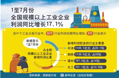 前7月規(guī)上工業(yè)企業(yè)利潤增17.1% 企業(yè)效益良好 盈利能力增強