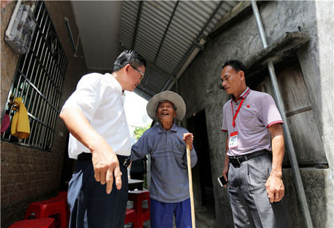調(diào)研組一行實(shí)地走訪村莊和貧困戶家庭