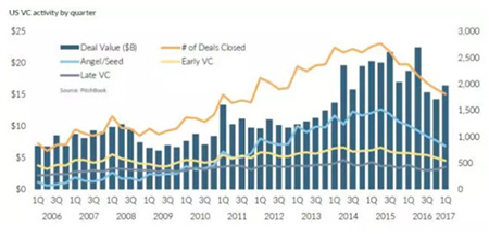 相比于2014年、2015年的持續(xù)火熱,2016年的美國風險投資市場有些趨冷。進入2017年,早期的跡象顯示今年將回歸到一個健康的風險投資年份。