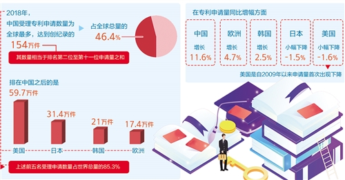 在世界知識(shí)產(chǎn)權(quán)組織此前舉辦的新聞吹風(fēng)會(huì)上,“中國”成為發(fā)布方介紹情況和記者們提問中的高頻詞。該機(jī)構(gòu)總干事高銳及首席經(jīng)濟(jì)學(xué)家芬克多次提到中國在世界知識(shí)產(chǎn)權(quán)事業(yè)中的突出地位。高銳表示,2018年,亞洲在專利、商標(biāo)、工業(yè)品外觀設(shè)計(jì)和其他知識(shí)產(chǎn)權(quán)申請(qǐng)量上繼續(xù)超越其他地區(qū),僅中國就占了世界專利申請(qǐng)量近一半,印度也取得了令人矚目的增長,亞洲已經(jīng)成為全球創(chuàng)新樞紐。