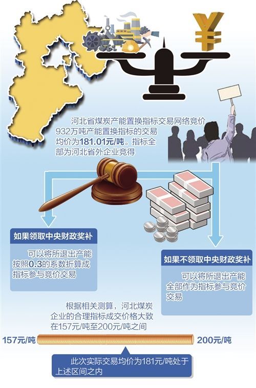 “總的來看,目前指標(biāo)交易價(jià)格基本處于合理水平,尚不存在價(jià)格過高的問題。”趙東晨分析說,以河北省煤炭產(chǎn)能置換指標(biāo)交易網(wǎng)絡(luò)競(jìng)價(jià)為例,932萬噸產(chǎn)能置換指標(biāo)的交易均價(jià)為181.01元/噸。從買方的角度來看,指標(biāo)全部為河北省外企業(yè)競(jìng)得。由于現(xiàn)行政策鼓勵(lì)產(chǎn)能置換指標(biāo)跨省交易,如果關(guān)閉退出煤礦與建設(shè)煤礦位于不同省區(qū)的,簽訂協(xié)議交易的產(chǎn)能置換指標(biāo)按相關(guān)文件規(guī)定折算后產(chǎn)能的130%計(jì)算。也就是說,對(duì)于省外買家來說,實(shí)際噸煤年產(chǎn)能付出的平均成本只有139元左右。
