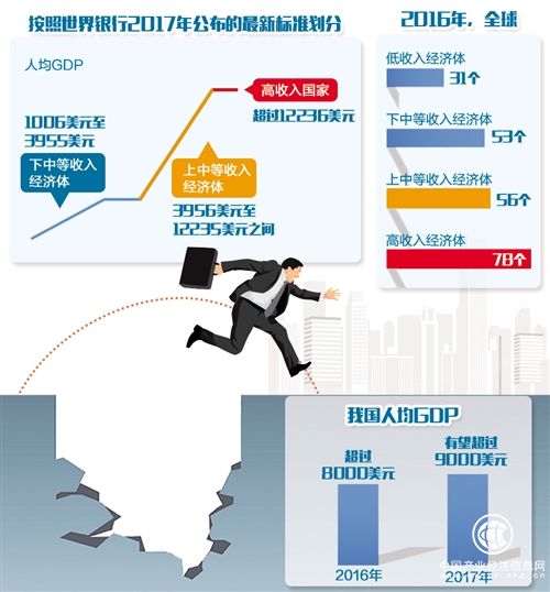 “我國人均GDP在2016年超過8000美元,2017年預計將逾9000美元。從全球看,我國已屬于上中等收入經濟體的中間水平。”國務院發(fā)展研究中心研究員許召元表示,盡管離1.2萬美元的高收入標準已經很近了,但剩下這段差距非常關鍵。如果保持6%左右的年均增長速度,在不考慮匯率升值和標準變化的情況下,再經過幾年發(fā)展,我國有可能進入高收入經濟體行列。