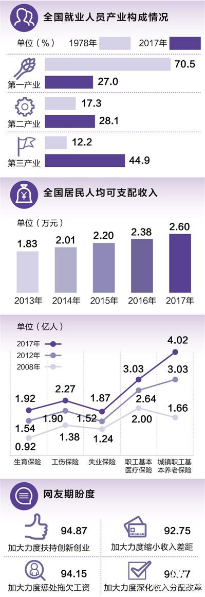 2017年末全國就業(yè)人員達(dá)7.76億人,比1978年增加3.75億人。不僅僅是數(shù)量上的變化,隨著我國經(jīng)濟(jì)結(jié)構(gòu)的持續(xù)優(yōu)化,就業(yè)結(jié)構(gòu)逐步改善,就業(yè)的渠道越來越寬了。