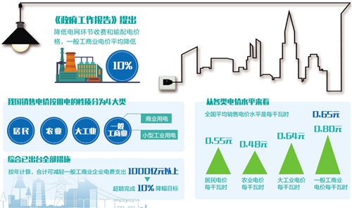 今年《政府工作報(bào)告》提出,“降低電網(wǎng)環(huán)節(jié)收費(fèi)和輸配電價(jià)格,一般工商業(yè)電價(jià)平均降低10%”。10%的降價(jià)空間從何而來(lái)?目前降價(jià)措施落實(shí)情況如何?政策紅利如何傳導(dǎo)到終端商業(yè)用戶?針對(duì)這些熱點(diǎn)問(wèn)題,經(jīng)濟(jì)日?qǐng)?bào)·中國(guó)經(jīng)濟(jì)網(wǎng)記者采訪了相關(guān)部門和專家。