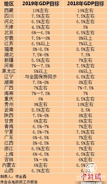如,西藏2019年GDP增速目標(biāo)為10%左右,四川2019年GDP增長(zhǎng)目標(biāo)是7.5%左右,河北2019年GDP增速目標(biāo)是6.5%左右,甘肅2019年GDP增長(zhǎng)目標(biāo)是6%左右,均與其2018年增長(zhǎng)目標(biāo)持平。