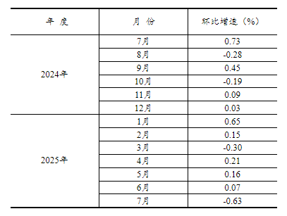 根據(jù)季節(jié)調(diào)整模型自動修正結(jié)果,對2024年7月份以來的固定資產(chǎn)投資(不含農(nóng)戶)環(huán)比增速進行修訂。修訂結(jié)果及2025年7月份環(huán)比數(shù)據(jù)如下: