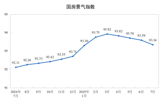 7月份,房地產(chǎn)開發(fā)景氣指數(shù)(簡稱“國房景氣指數(shù)”)為93.34。
