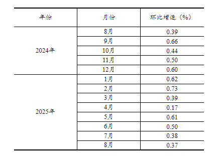 根據(jù)季節(jié)調(diào)整模型自動修正結(jié)果,對2024年8月至2025年7月份規(guī)模以上工業(yè)增加值環(huán)比增速進行修訂。修訂結(jié)果及2025年8月份環(huán)比數(shù)據(jù)如下: