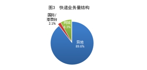 1-8月,同城、異地、國(guó)際/港澳臺(tái)快遞業(yè)務(wù)量分別占全部快遞業(yè)務(wù)量的8.3%、89.6%和2.1%。與去年同期相比,同城快遞業(yè)務(wù)量的比重下降0.9個(gè)百分點(diǎn),異地快遞業(yè)務(wù)量的比重上升0.9個(gè)百分點(diǎn),國(guó)際/港澳臺(tái)業(yè)務(wù)量的比重基本持平。