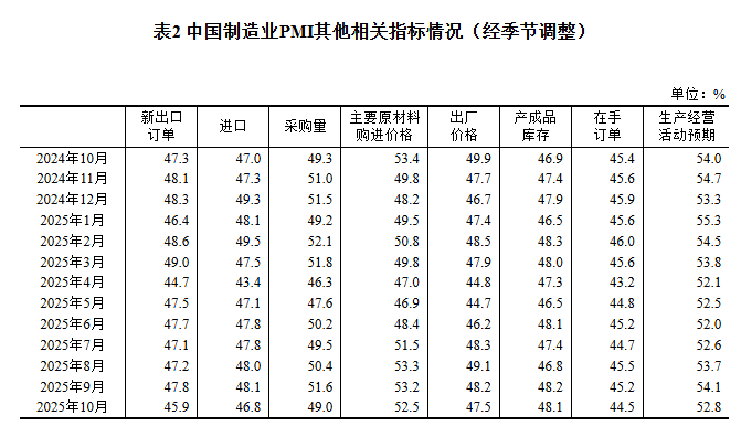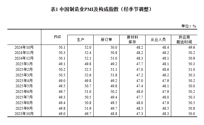 2025年10月中國(guó)采購(gòu)經(jīng)理指數(shù)運(yùn)行情況