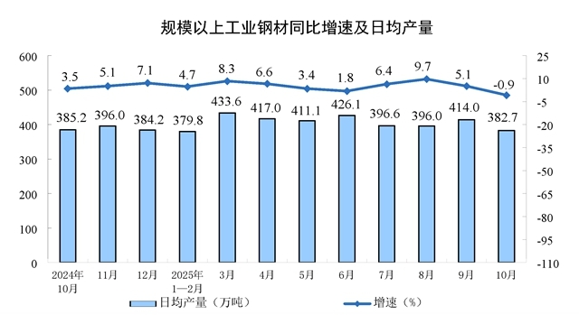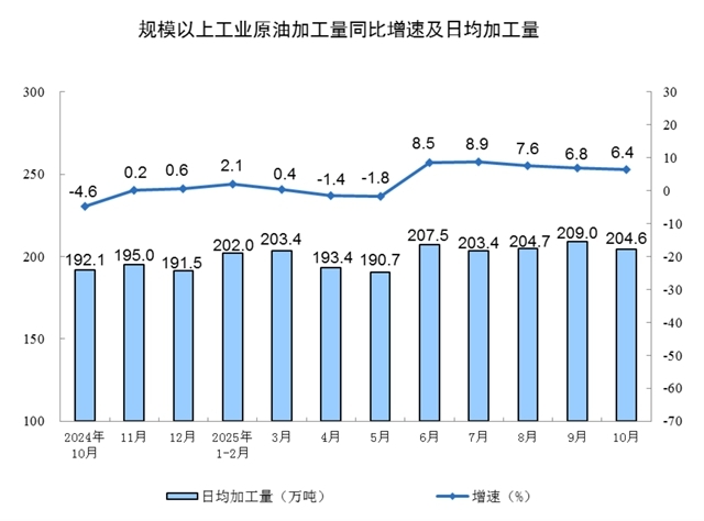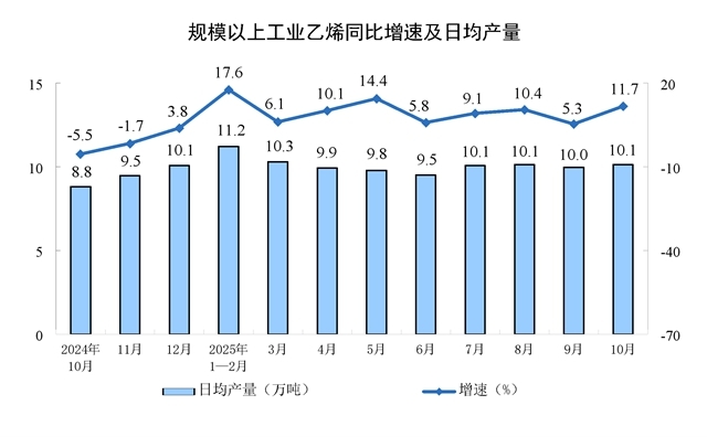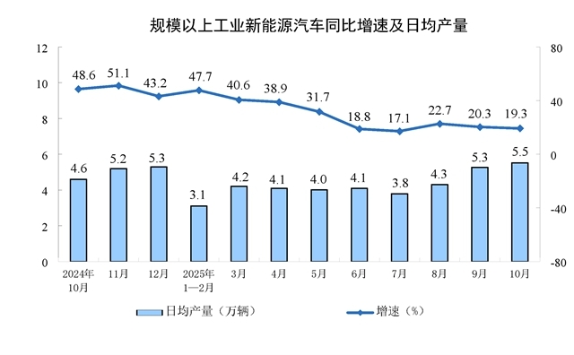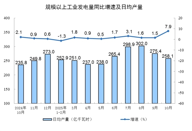 分產(chǎn)品看,10月份,規(guī)模以上工業(yè)623種產(chǎn)品中有313種產(chǎn)品產(chǎn)量同比增長(zhǎng)。其中,鋼材11864萬(wàn)噸,同比下降0.9%;水泥14775萬(wàn)噸,下降15.8%;十種有色金屬695萬(wàn)噸,增長(zhǎng)2.9%;乙烯314萬(wàn)噸,增長(zhǎng)11.7%;汽車327.9萬(wàn)輛,增長(zhǎng)11.2%,其中新能源汽車171.0萬(wàn)輛,增長(zhǎng)19.3%;發(fā)電量8002億千瓦時(shí),增長(zhǎng)7.9%;原油加工量6343萬(wàn)噸,增長(zhǎng)6.4%。