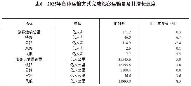 [32]2025年調(diào)整網(wǎng)約車載客系數(shù),相應(yīng)對出租汽車城市客運量等指標(biāo)本年度及上年同期數(shù)據(jù)進(jìn)行調(diào)整。2025年旅客運輸總量、旅客運輸周轉(zhuǎn)量、公路旅客運輸量、公路旅客運輸周轉(zhuǎn)量增速按可比口徑計算。