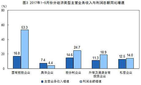 2017年1-5月份全國規(guī)模以上工業(yè)企業(yè)利潤總額同比增長22.7%