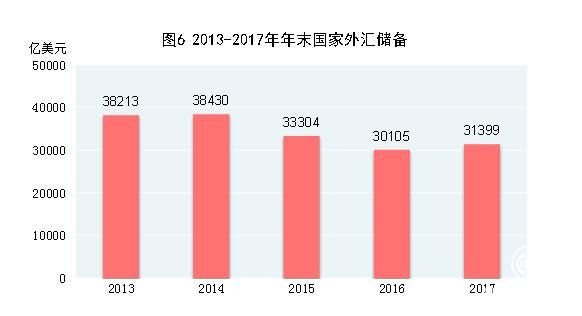 年末國家外匯儲備31399億美元,比上年末增加1294億美元。全年人民幣平均匯率為1美元兌6.7518元人民幣,比上年貶值1.6%。