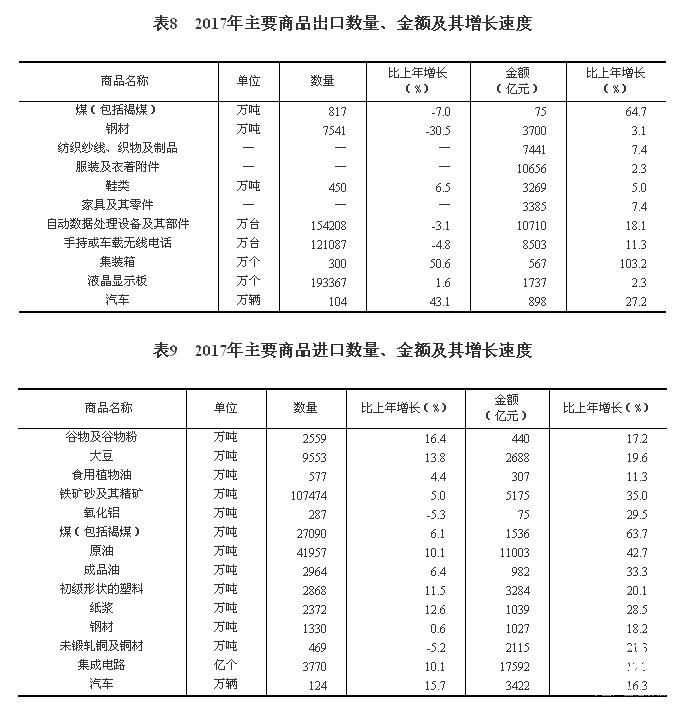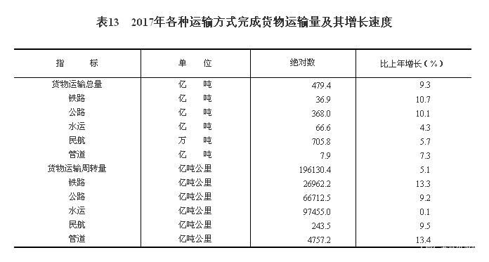 中華人民共和國2017年國民經(jīng)濟和社會發(fā)展統(tǒng)計公報
